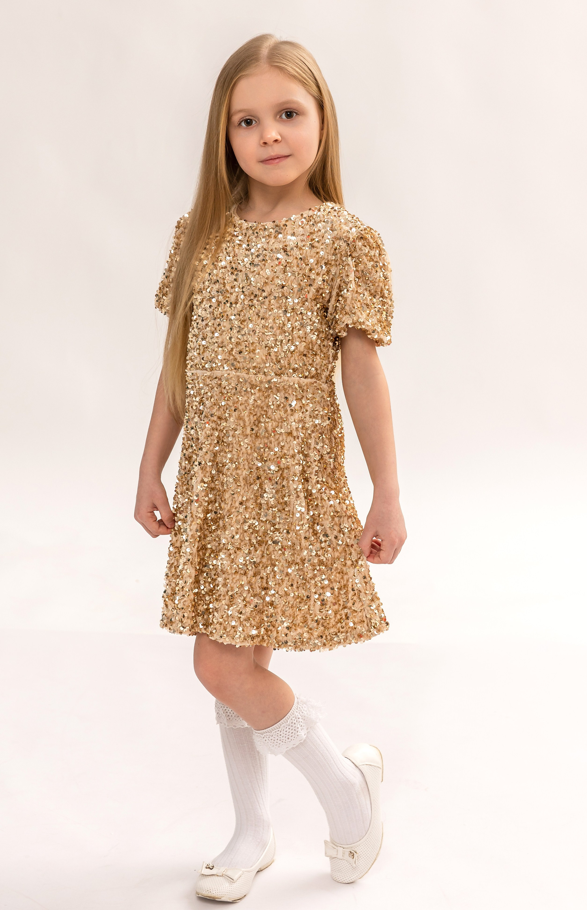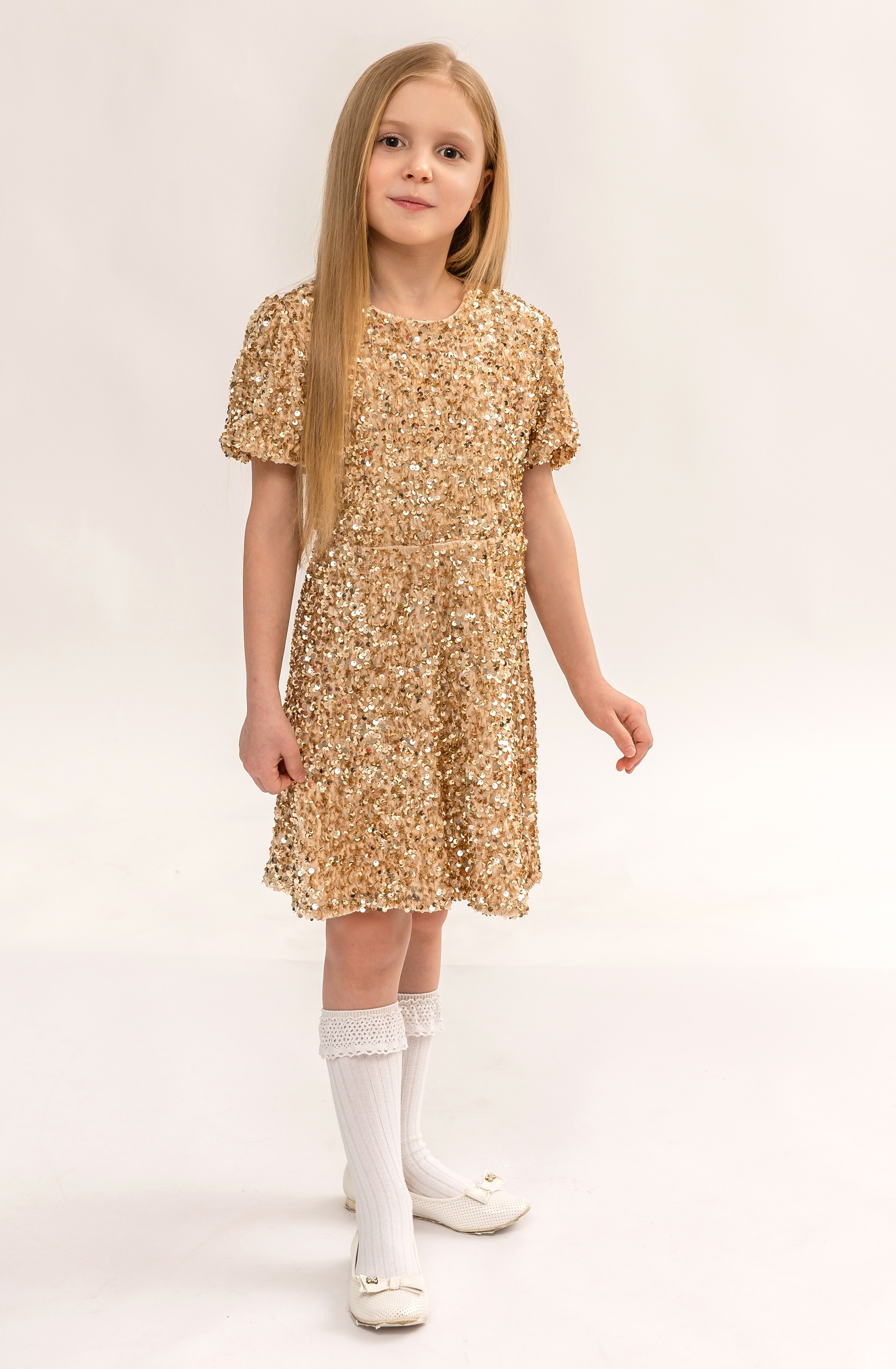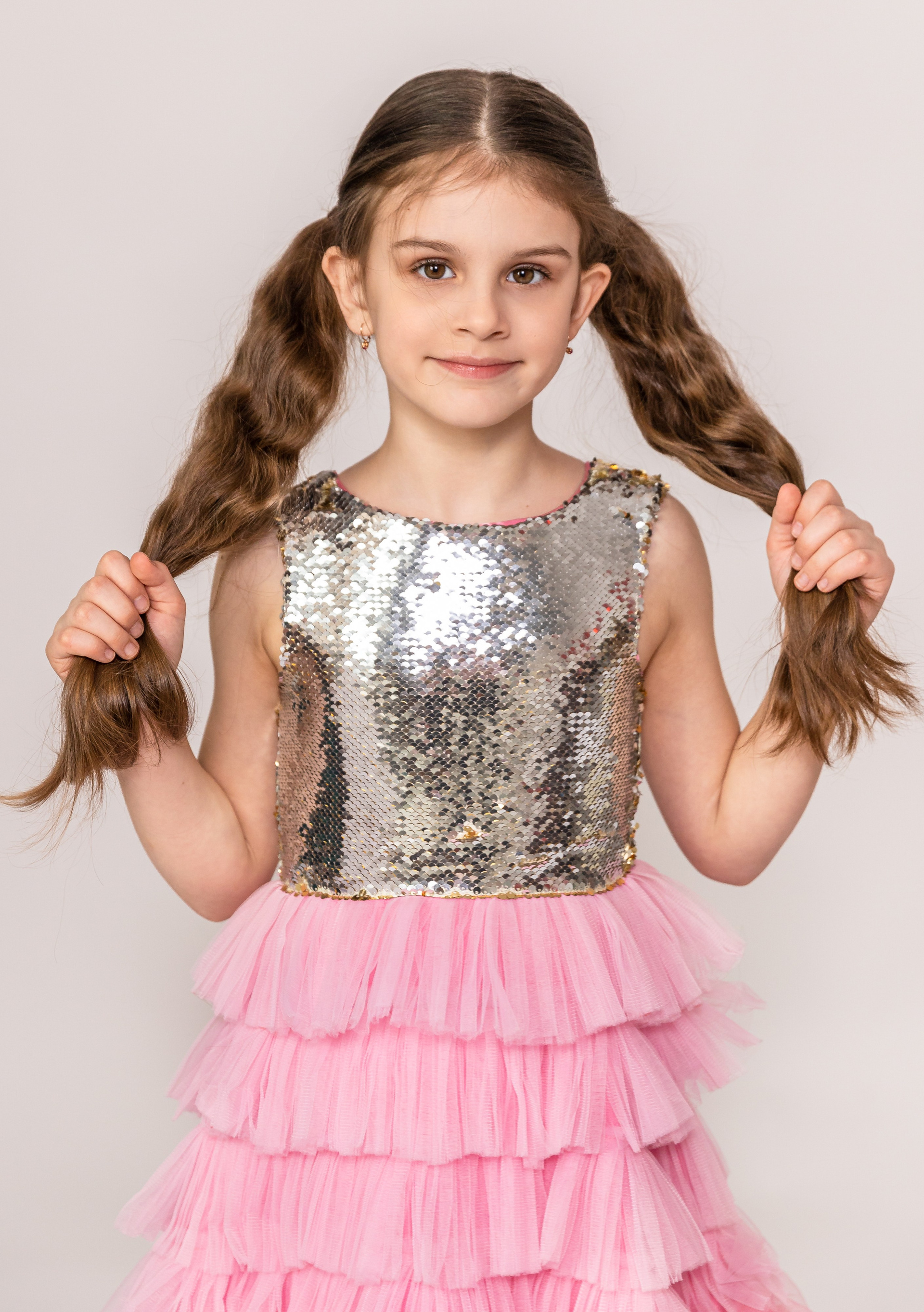 платье для девочки, розовый низ со шлейфом, золотой верх с пайетками