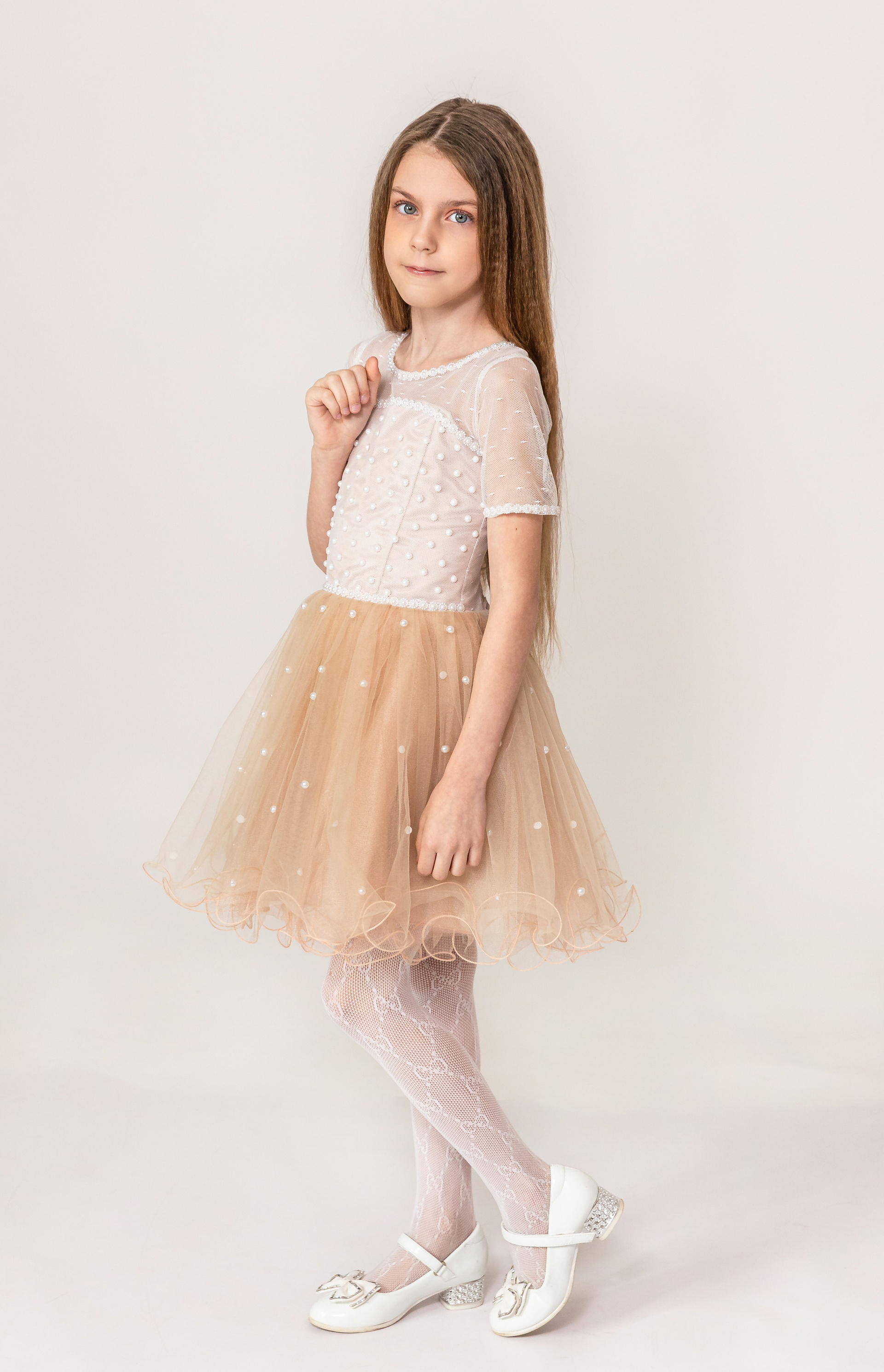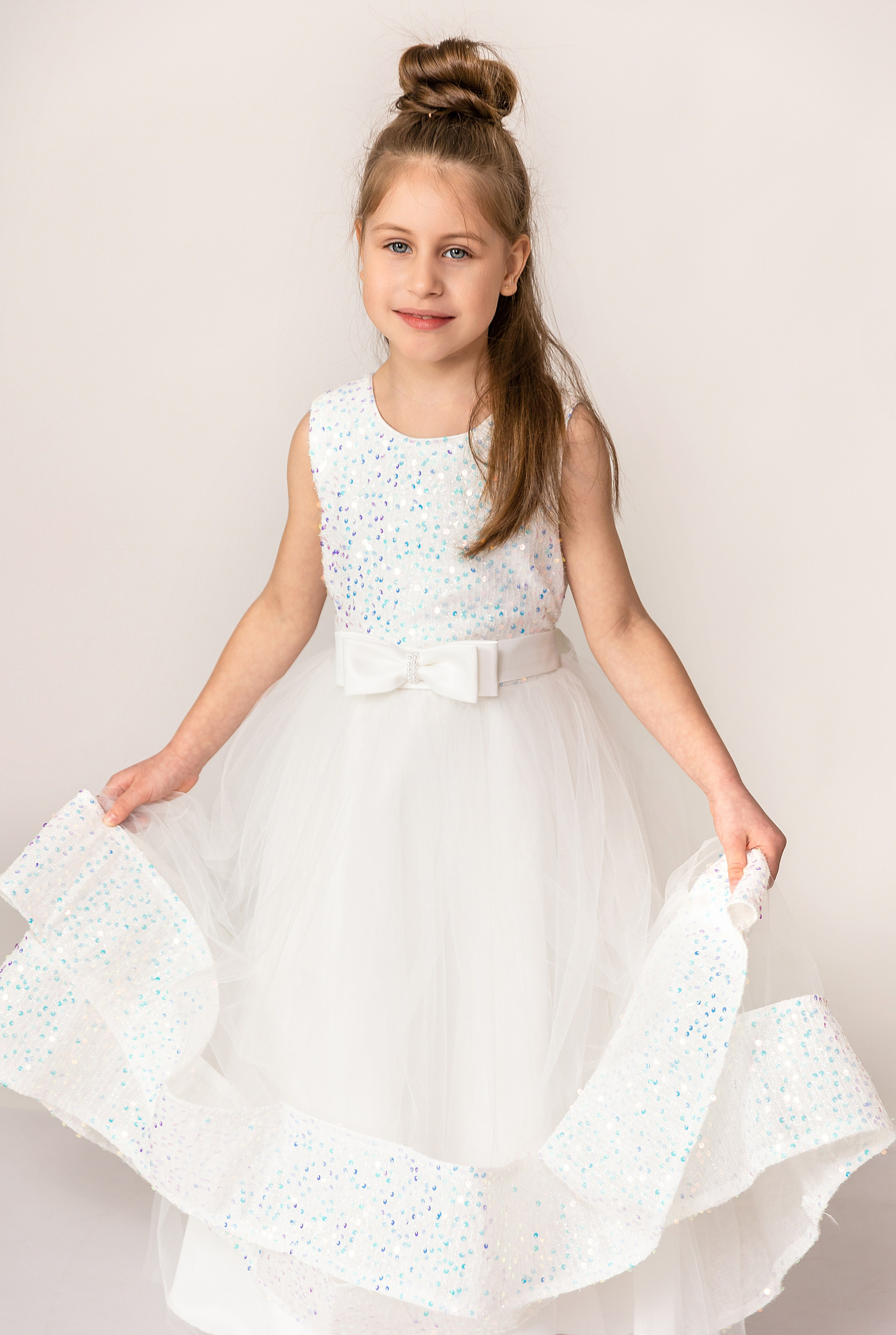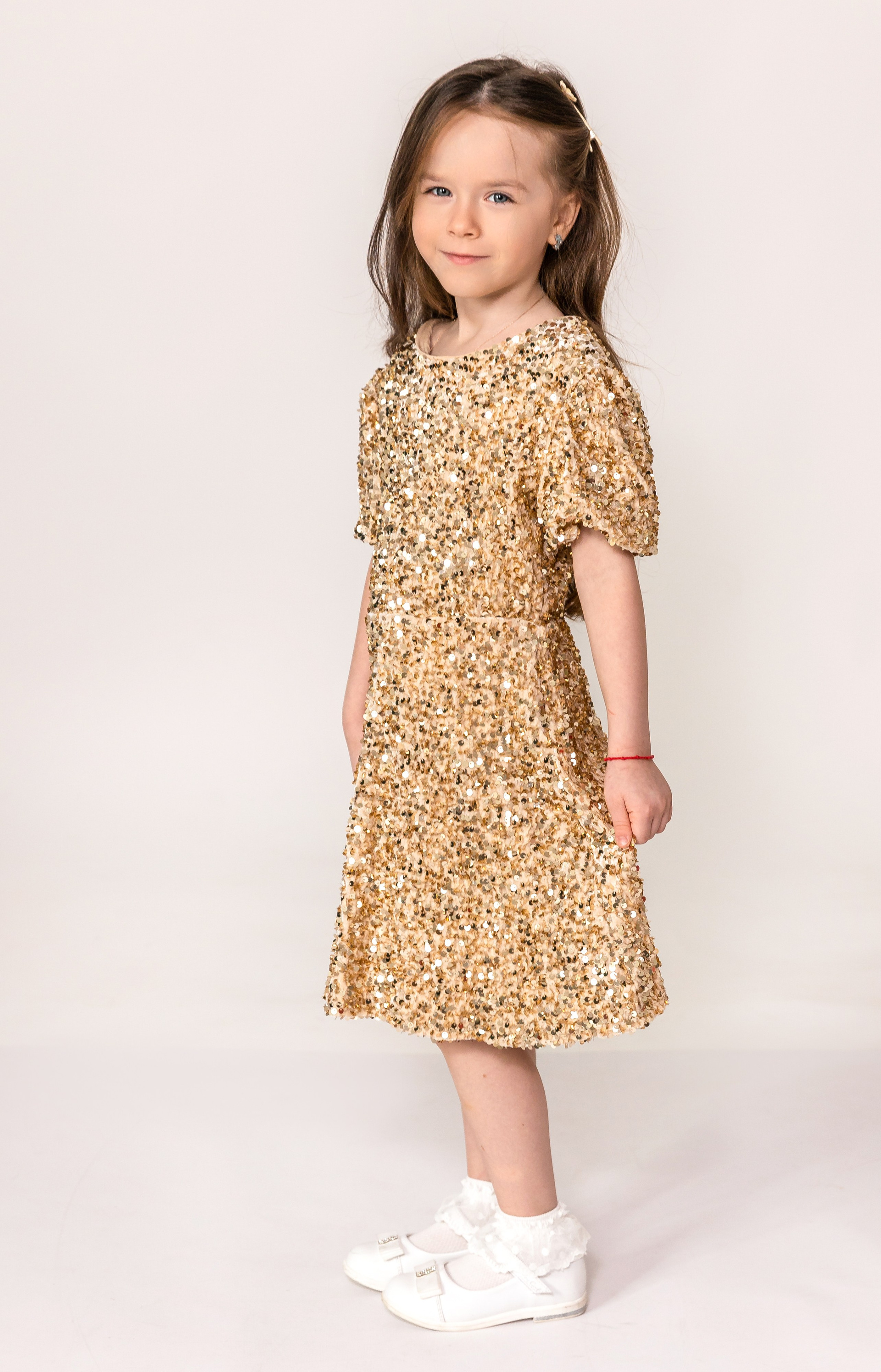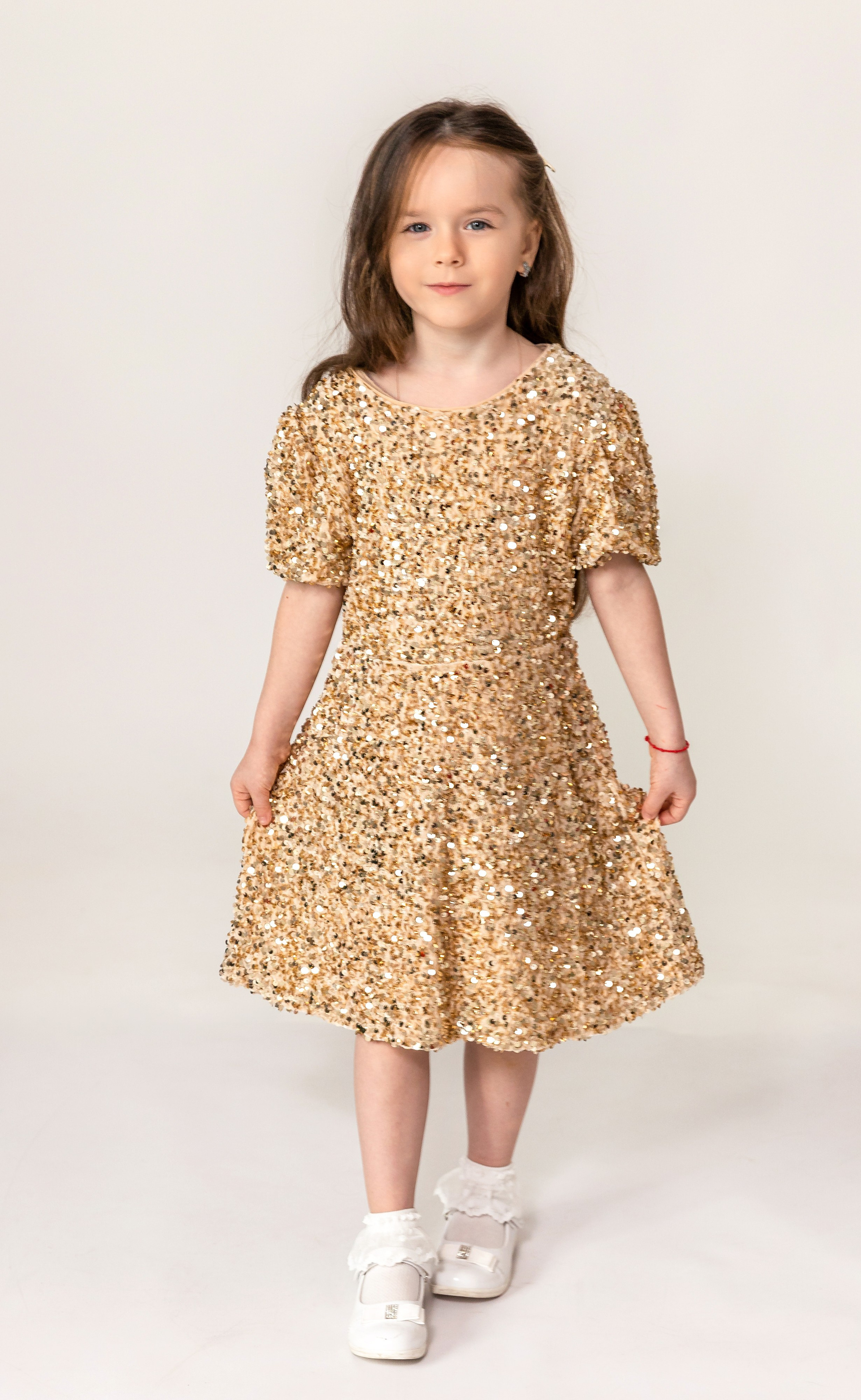 платье для девочки, розовый низ со шлейфом, золотой верх с пайетками