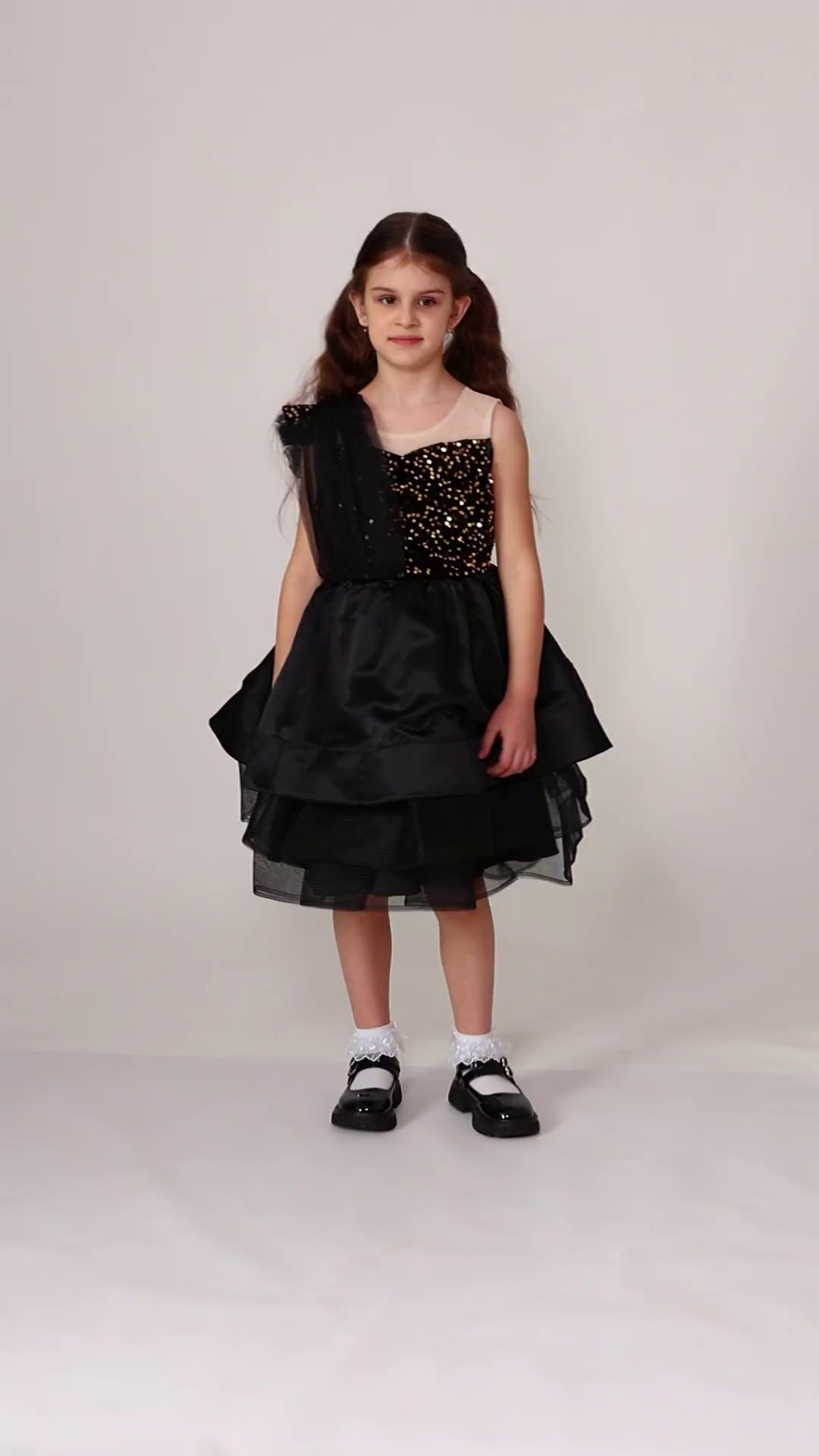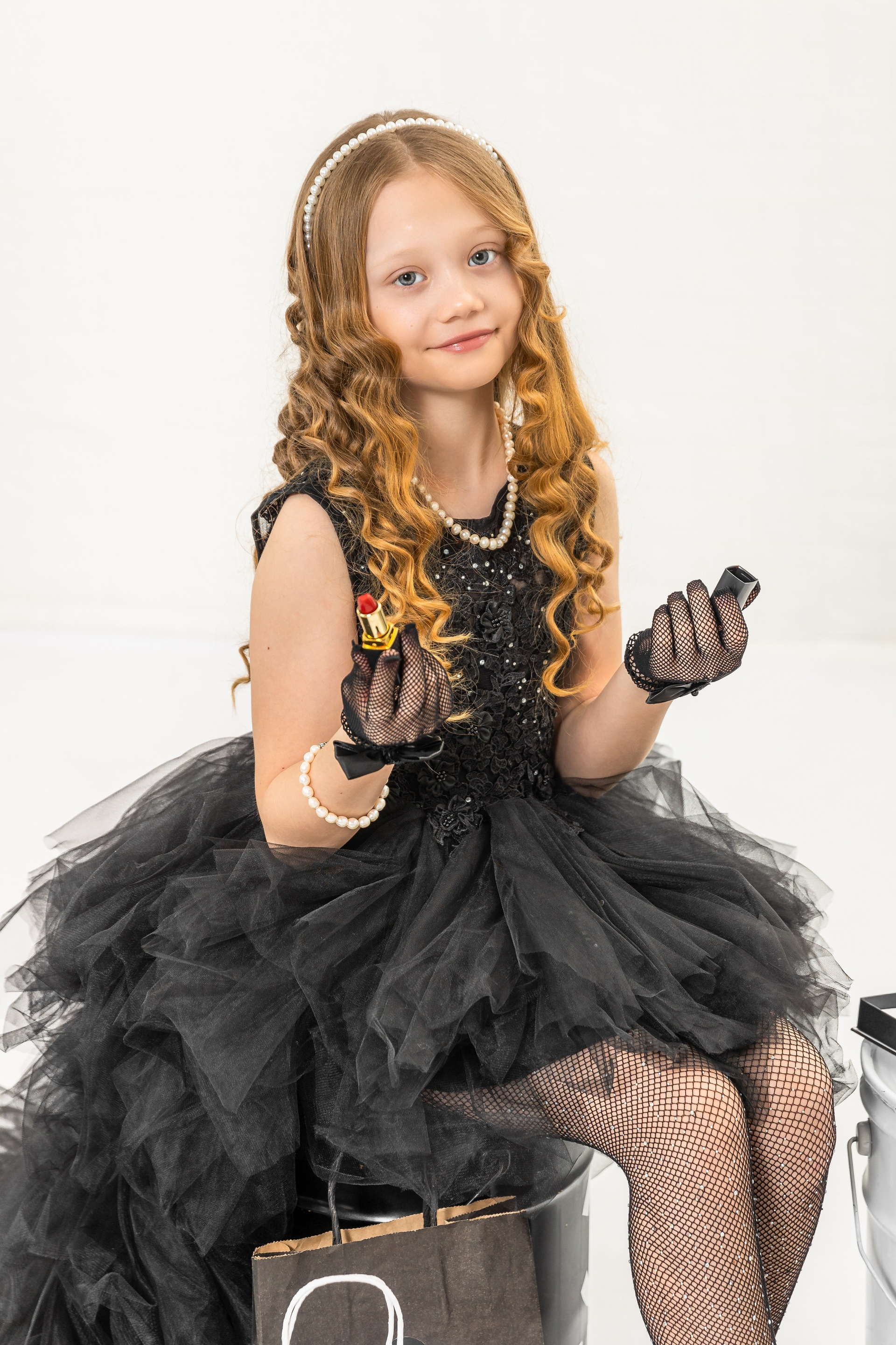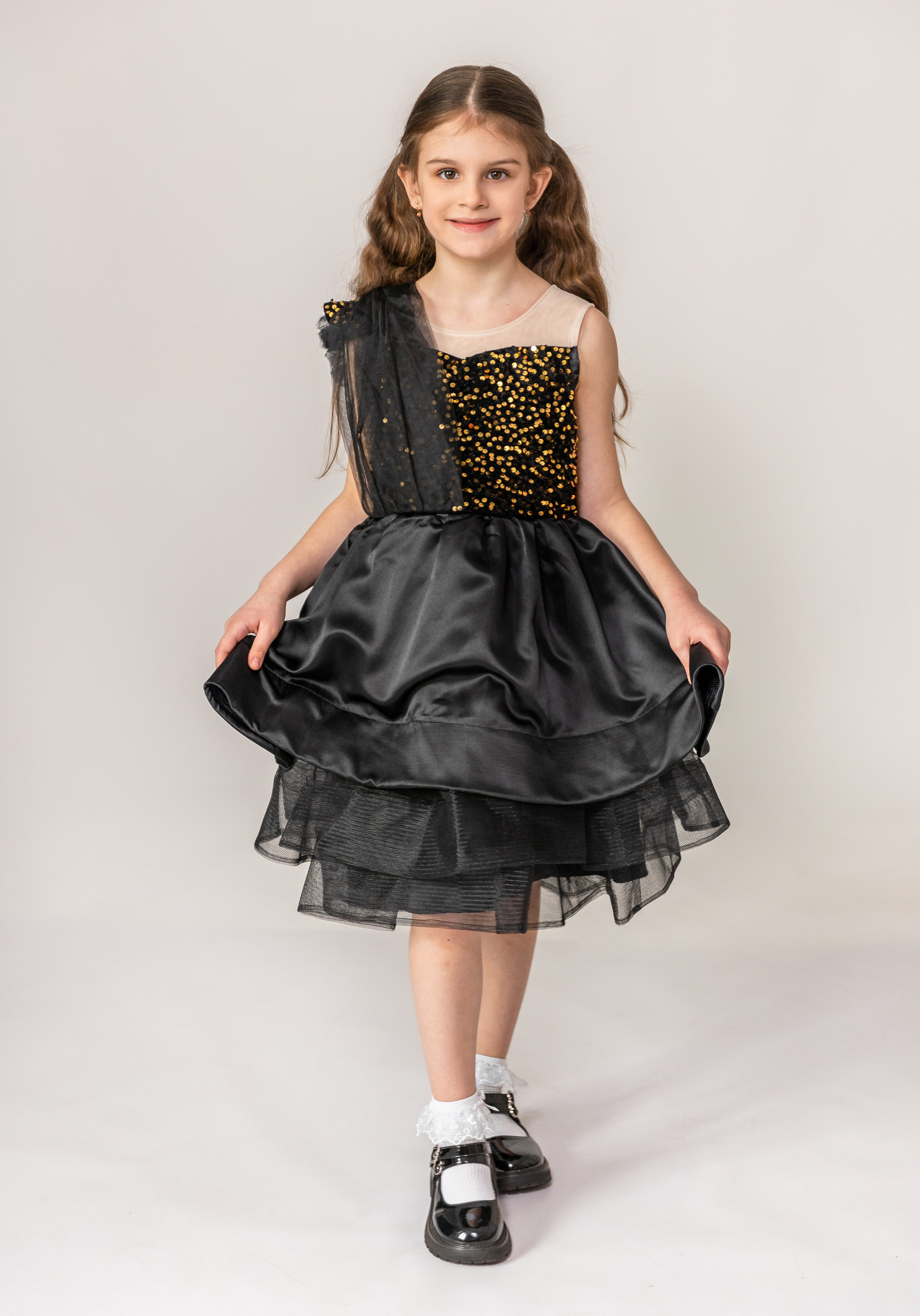 платье для девочки, черное, пышное, со съёмным шлейфом