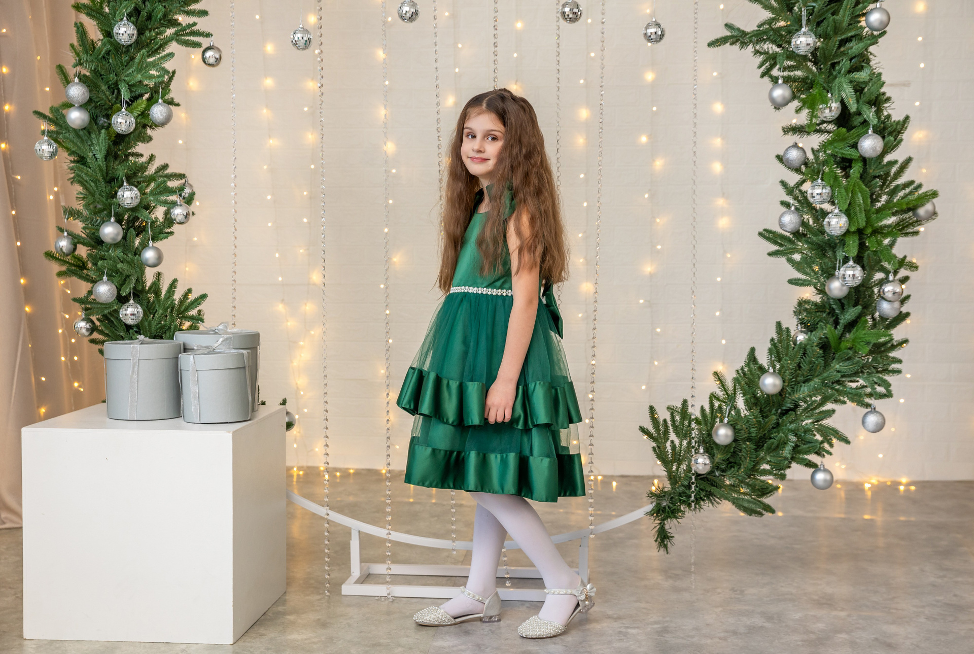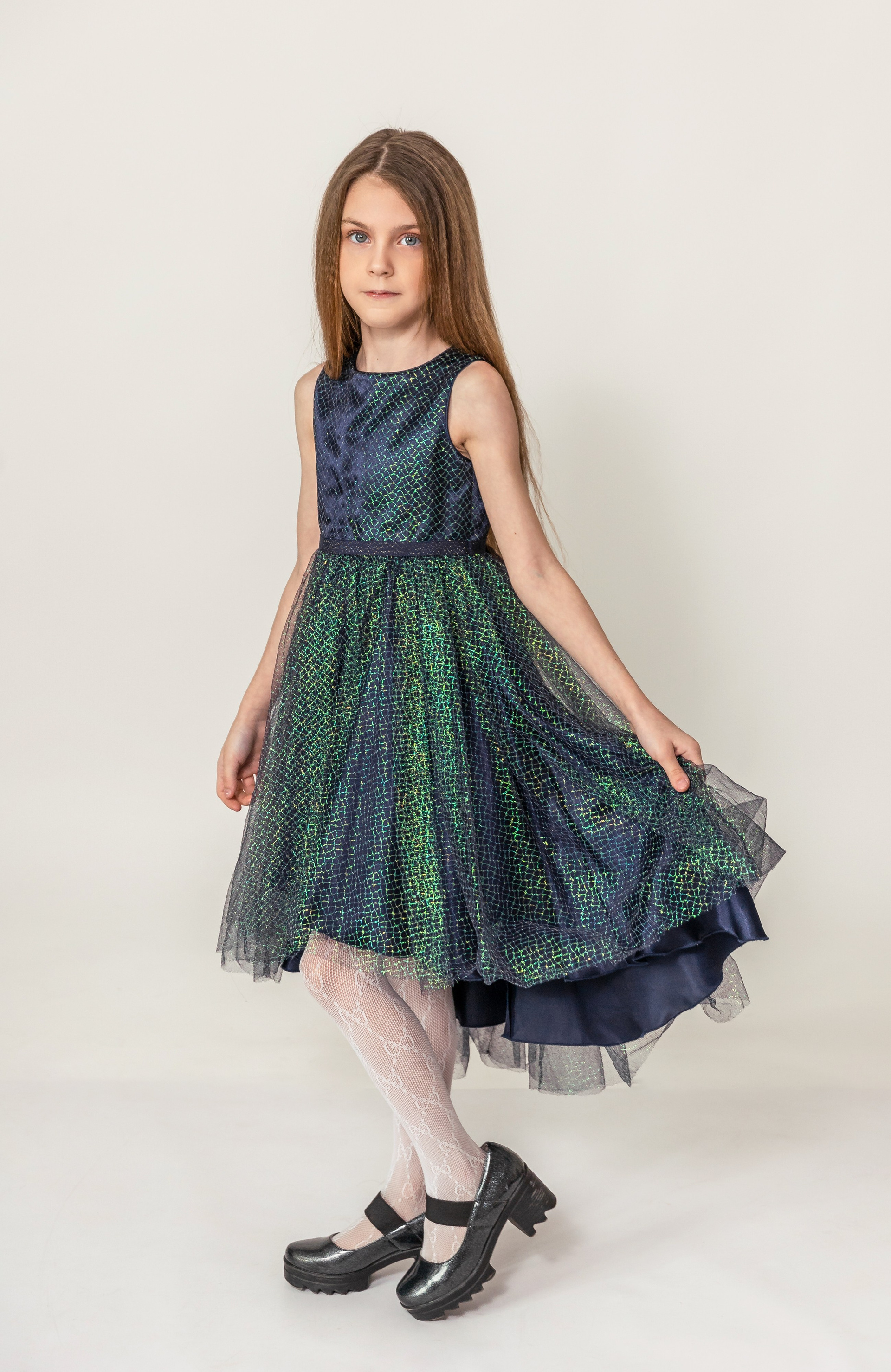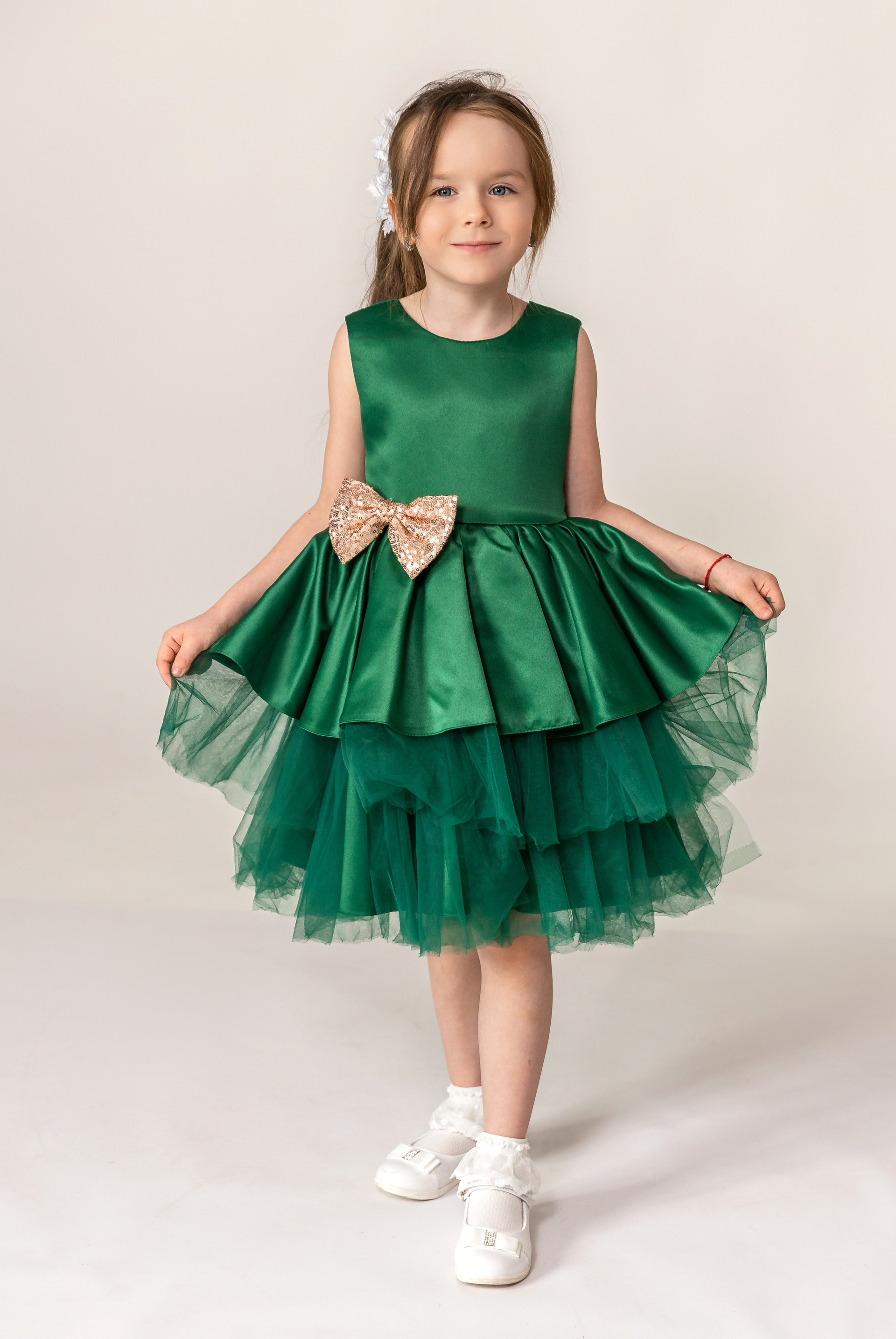 платье для девочки, черное, пышное, со съёмным шлейфом
