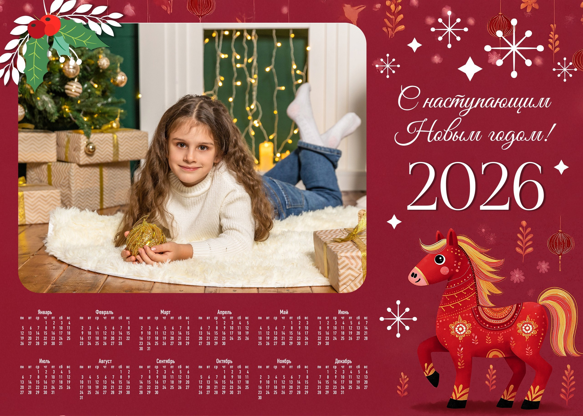 Новогодние календари или открытки с вашими фотографиями