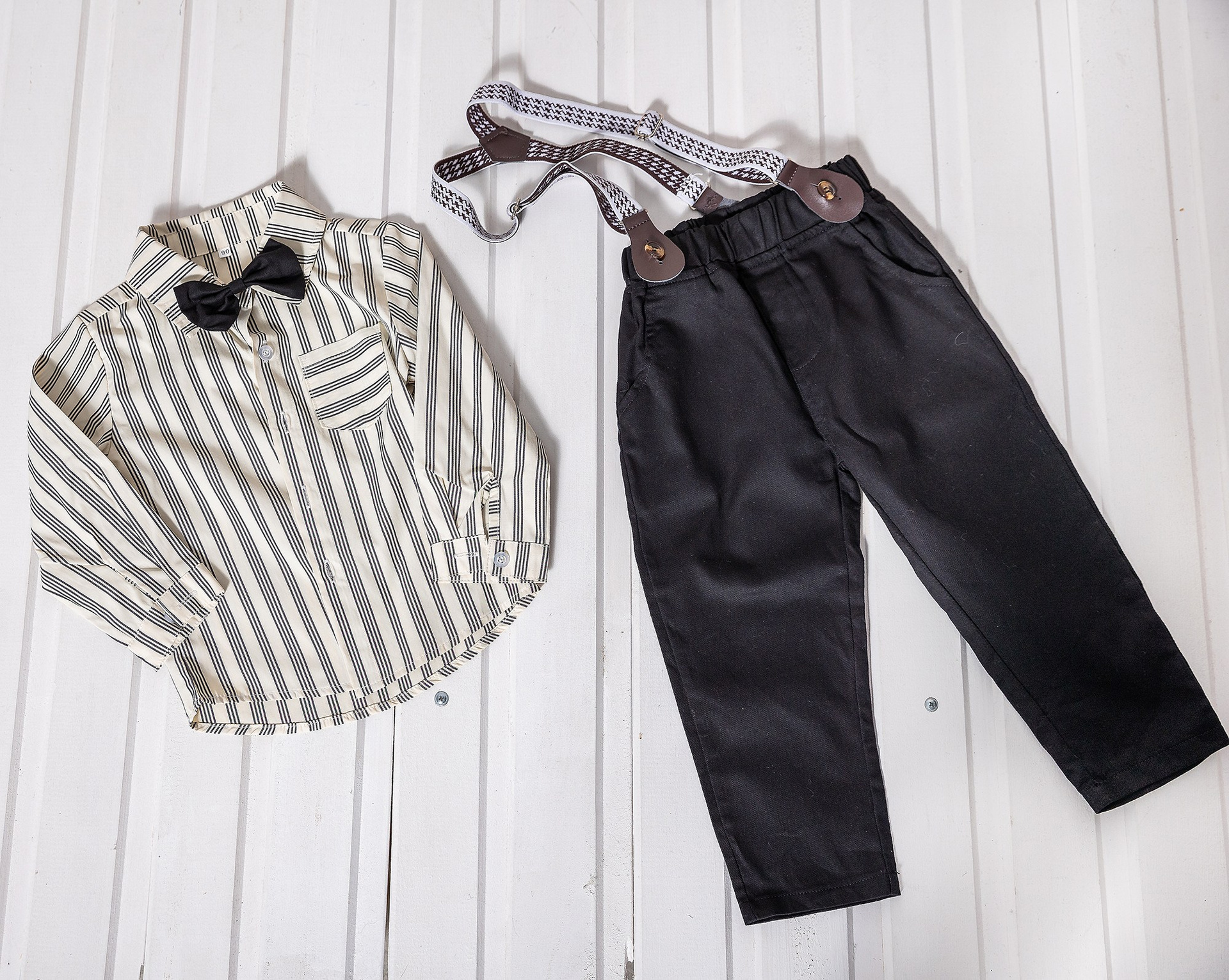 костюмчик: рубашка с длинным рукавом и штанишками на подтяжках